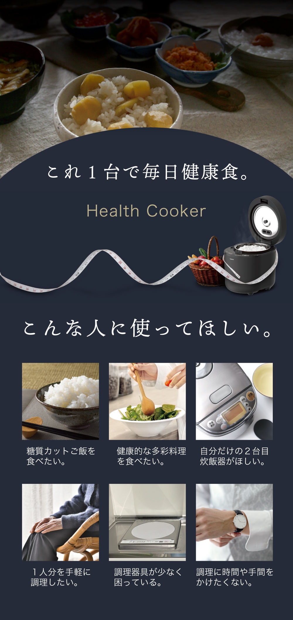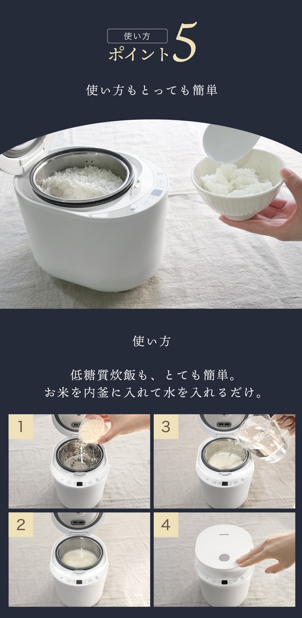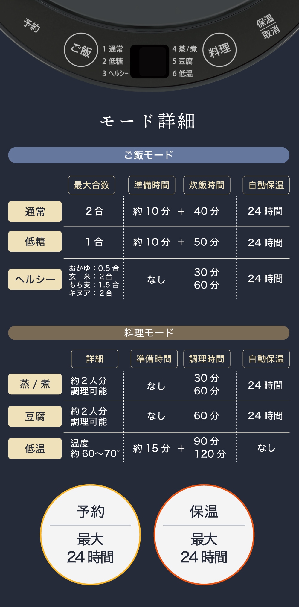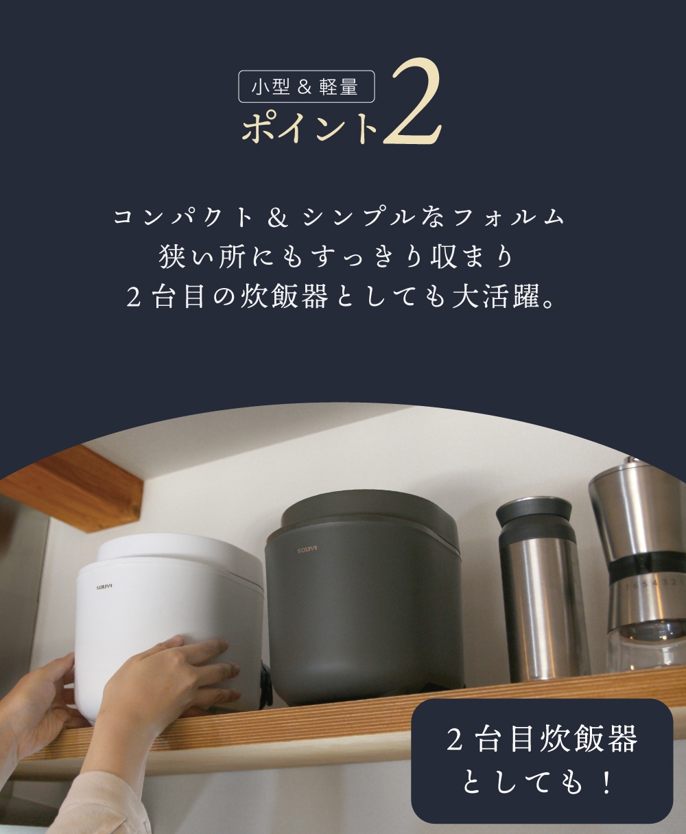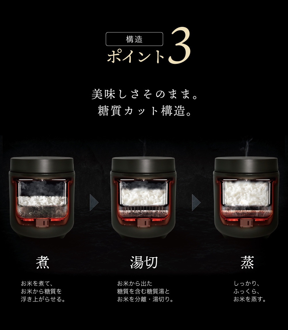 | 炊飯容量(最大) | 通常炊飯:2合 低糖質炊飯:1合 |