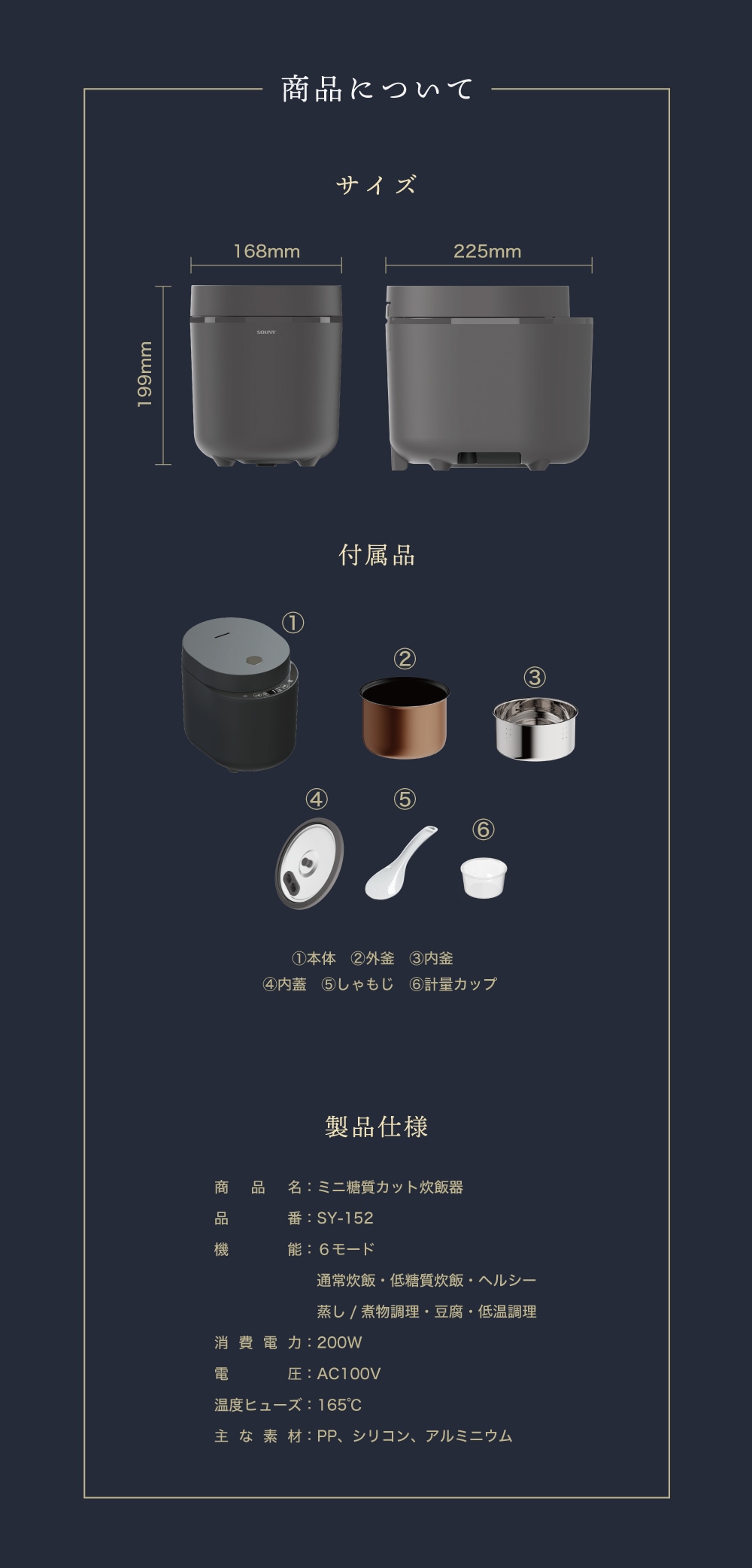 | 付属品 | しゃもじ、計量カップ、取扱説明書兼保証書 |