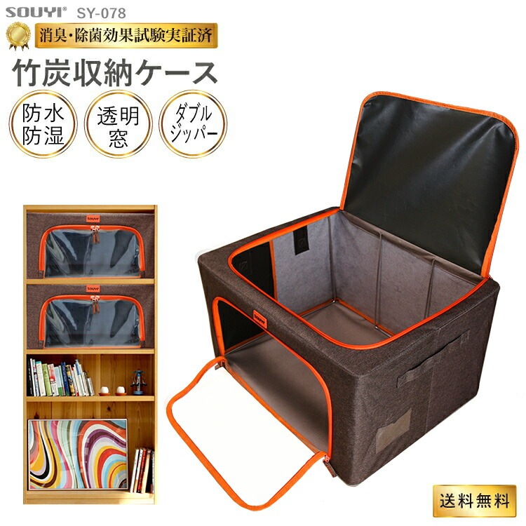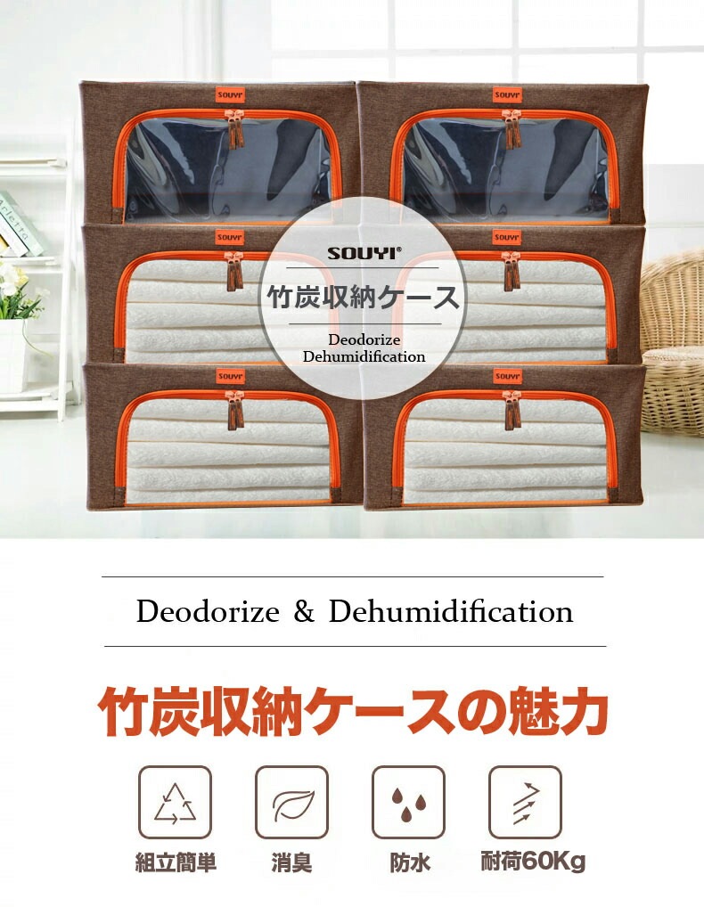 1.上から入れて横から出せる、脱臭効果のある竹炭収納ケース!