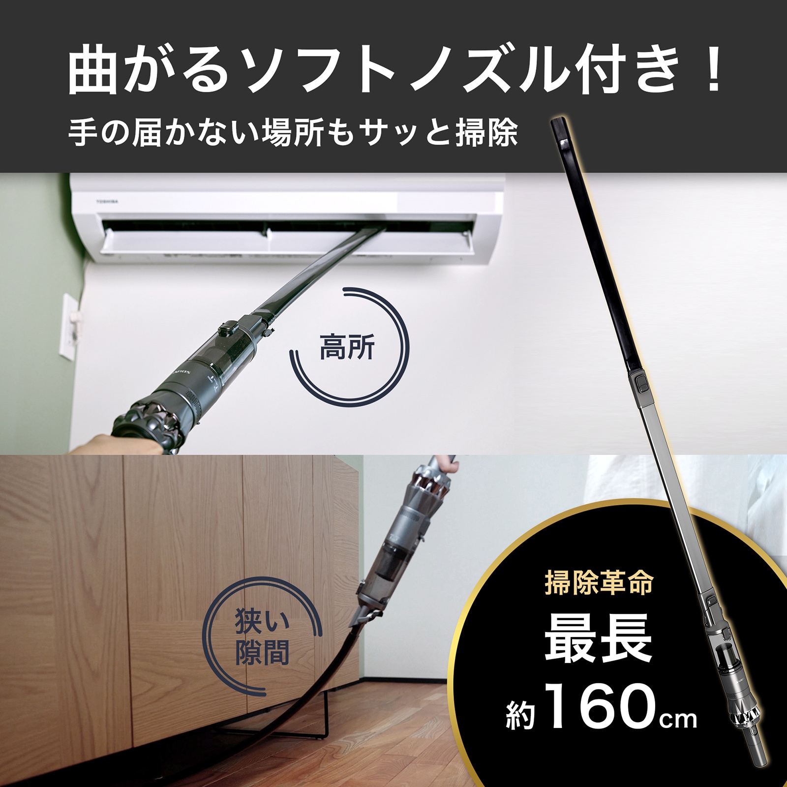 ・複数のアタッチメント(延長パイプ、ヘッド、隙間ノズル、ソフトノズル)によって様々なシチュエーションに対応した組み合わせができます。 -