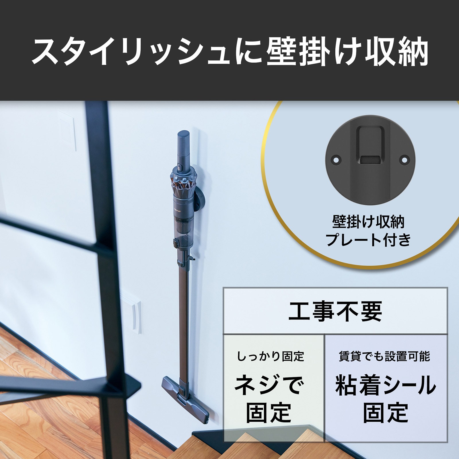 充電アダプター、壁掛け収納プレート一式、隙間ノズル、ソフトノズル、