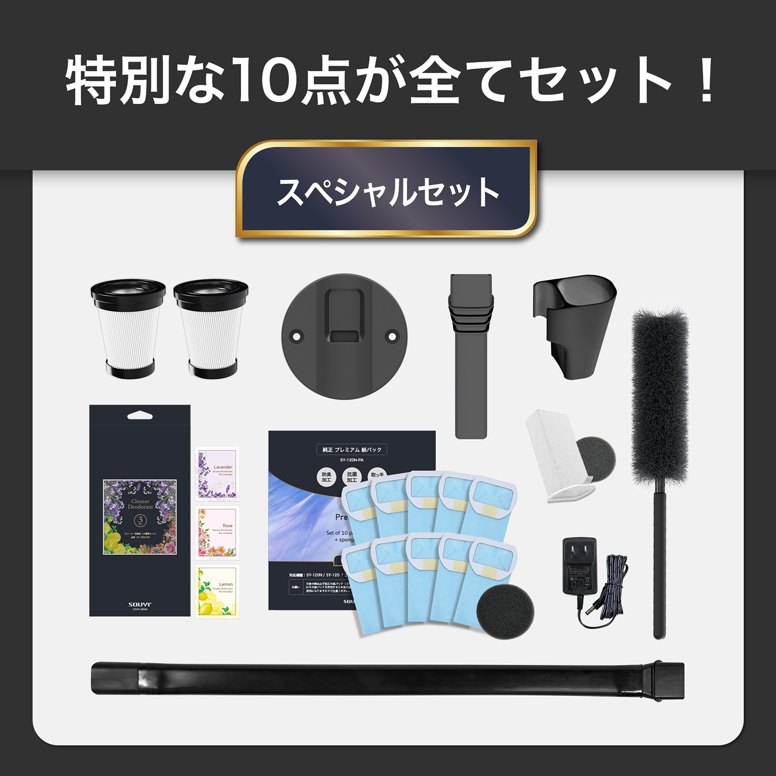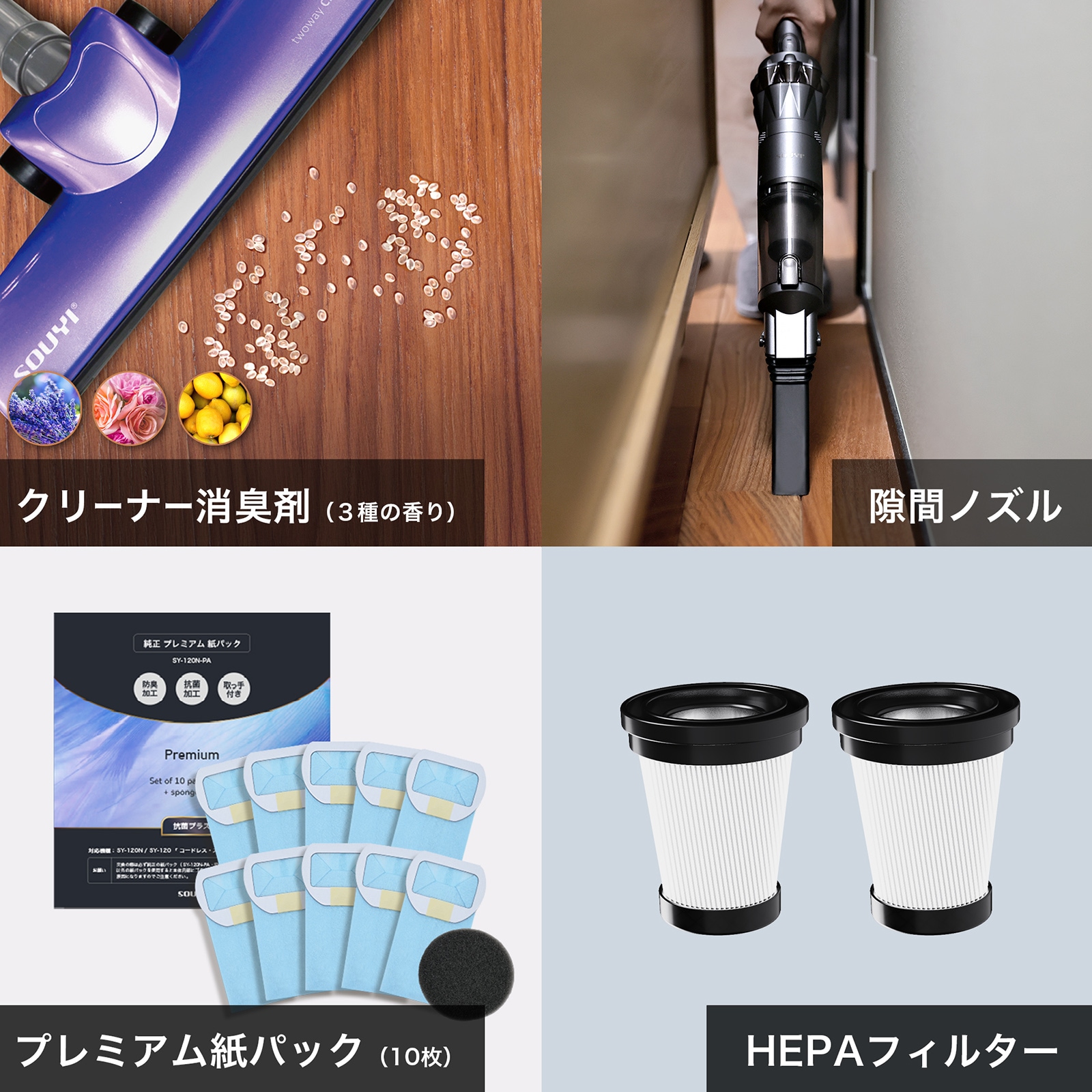 HEPAフィルター(交換用)x2、紙パックx10、期間限定紙パック、